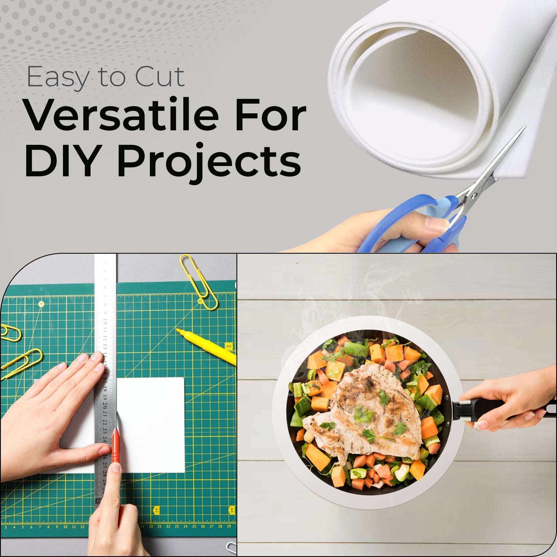 Whether you're looking for a reliable gasket material, a food-grade surface, or a craft mat for table surfaces, this material adapts to your needs with unmatched versatility. You can easily cut it with a knife or scissors, giving you the freedom to tailor it to your specific project.